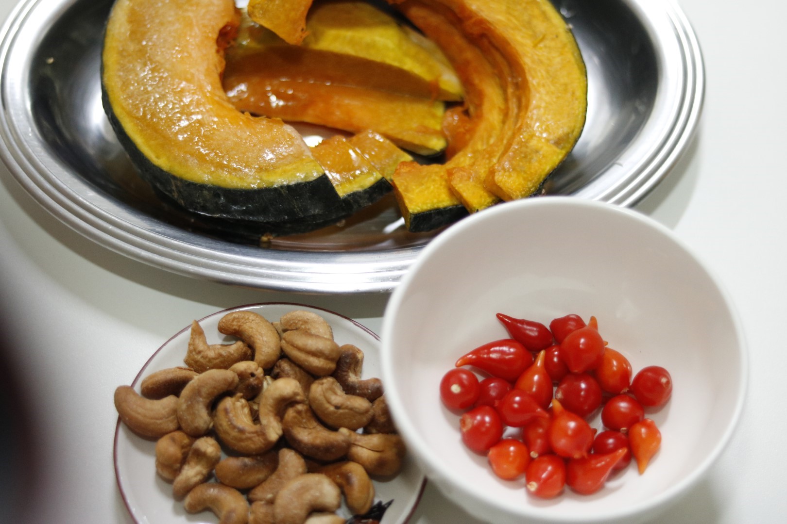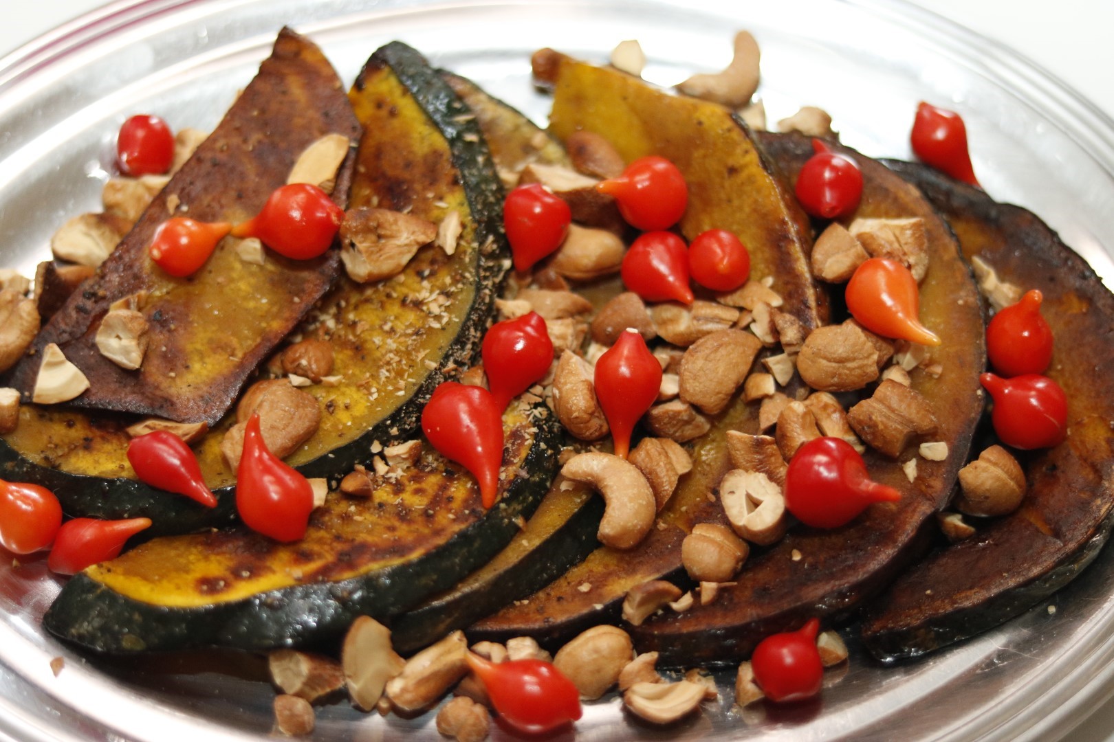 A primeira receita foi bem simples. Abóbora grelhada com castanha de caju e pimenta biquinho. Foi o acompanhamento da nossa janta de domingo. Só que desta vez, decidi não divulgar. Vou simplesmente escrever e deixar aqui… quem viu, viu. E pelas fotos, você pode ver como ficou esse primeiro prato.